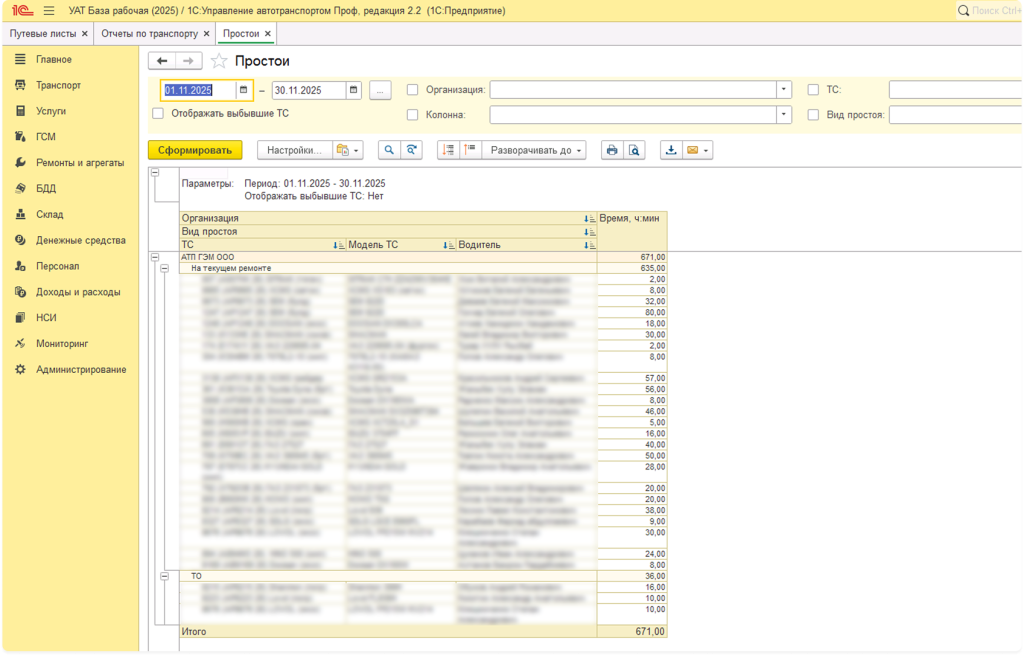 1С теперь учитывает не только активную работу техники, но и «горячий простой», когда машина с водителем находится в ожидании на объекте, что позволяет корректно рассчитывать стоимость по разным тарифам.