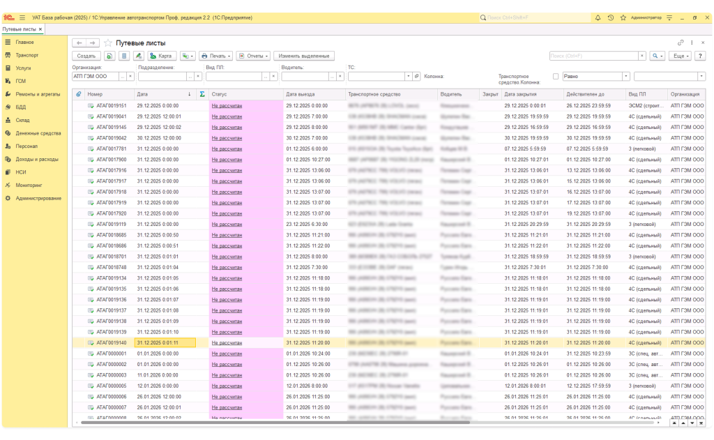Полностью автоматизировали процесс работы: от выдачи и разнарядки путевого листа до закрытия и пакетной выписки. Все операции теперь выполняются в программе, исключая потерю данных.