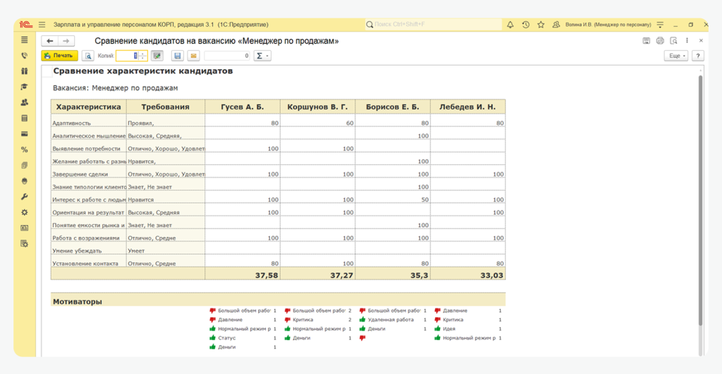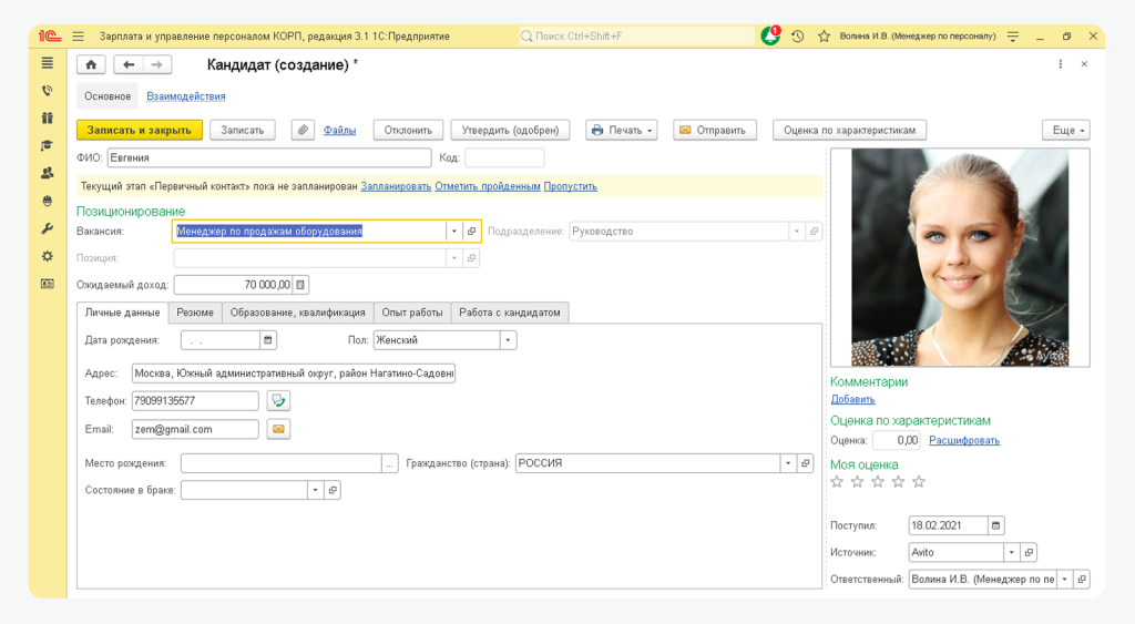 1С:ЗУП КОРП позволяет удобно взаимодействовать с кандидатами и руководителями.