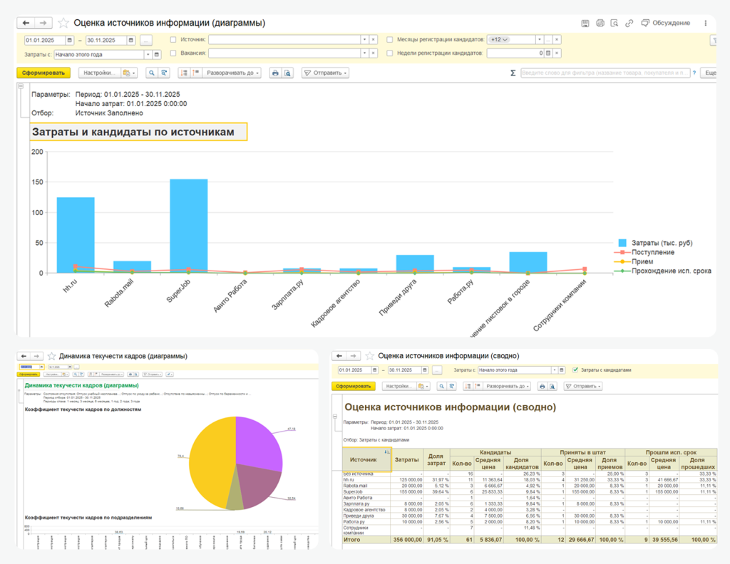 Встроенная аналитика позволяет оценивать эффективность подбора, адаптации, обучения и затрат на персонал. HR получают понятные отчёты и дашборды, чтобы принимать решения на основе данных, а не интуиции.