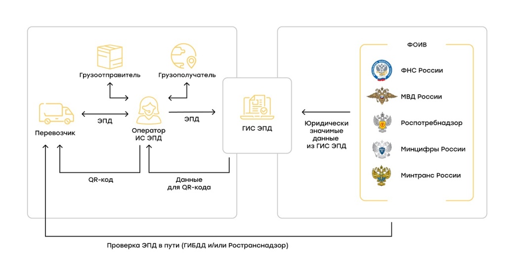 Государственные органы также имеют доступ к ГИС ЭПД: ФНС, Минздрав, Минсельхоз, МВД и т. д. Поэтому, если контролирующим органам потребуется информация о деталях конкретной перевозки, сведения будут взяты напрямую в ГИС ЭПД, без обращения в организацию, задействованную в перевозке.