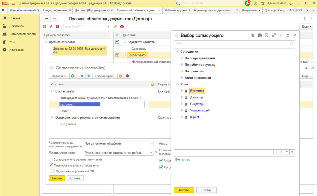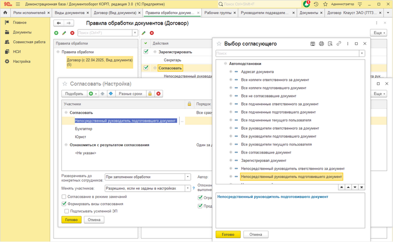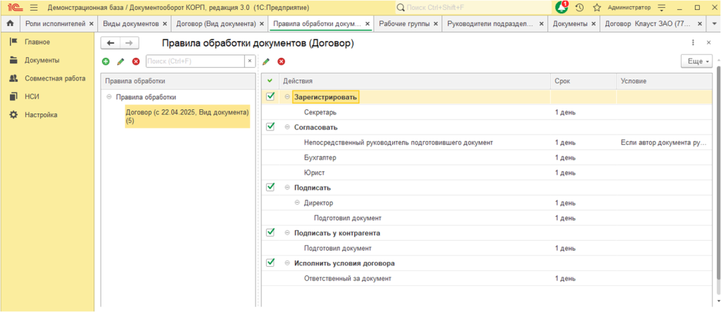 Чтобы система работала как часы, настройте виды документов, правила обработки маршрутов документов.