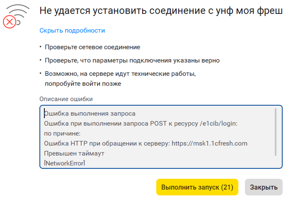 Ошибка НТТР при обращении к серверу: https://msk1.1cfresh.com