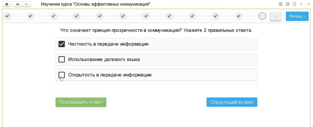 Для проверки усвоения материала предусмотрено тестирование с различными форматами вопросов: