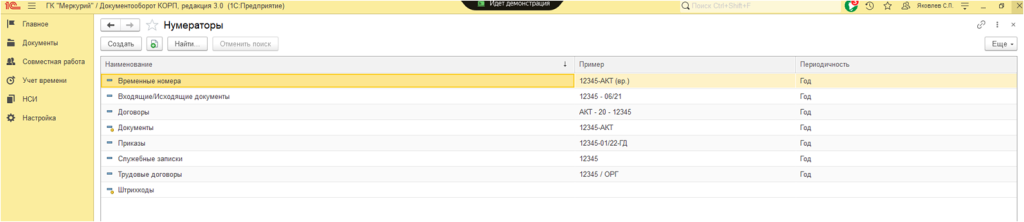 Всё это настраивается заранее в разделе «Нормативно-справочная информация» – «Виды документов».