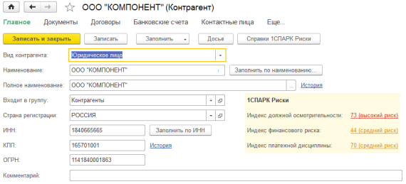 Индексы 1СПАРК показывают, как ведётся хоз. деятельность компании, финансовое состояние за последние три года и т.д.